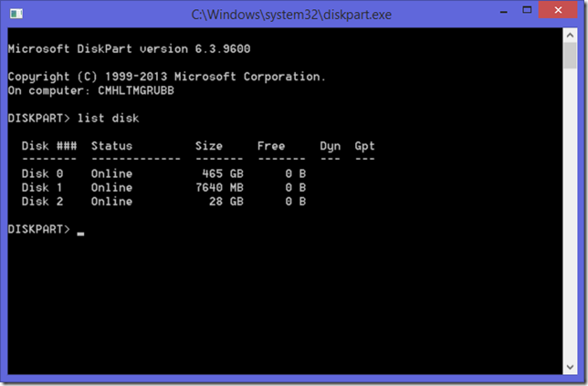 Now insert the bad SD card into your reader, and type “List Disk” again, and look for the disk that wasn’t there before.