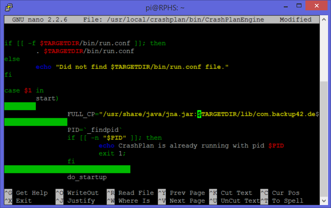 sudo nano /usr/local/crashplan/bin/CrashPlanEngine