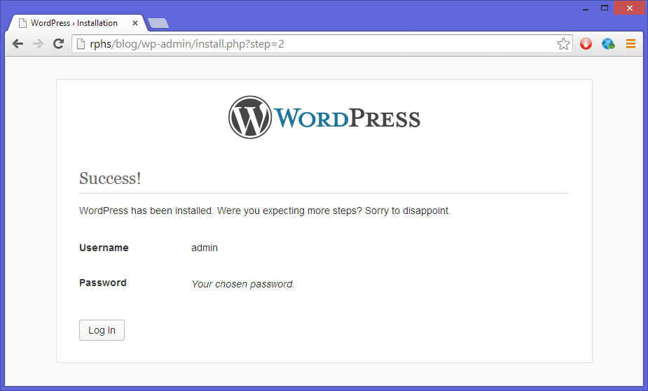 It’s been quite a while since I did the article on WordPress, and it’s possible that something in the installer has changed, but I think the problem is most likely with the symbolic link. Double check that the link was set up correctly, and that listing the contents of /var/www showed the contents from /usr/share/WordPress. ________________________________