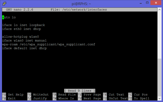 sudo nano /etc/network/interfaces